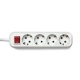 Сетевой удлинитель MastAK выполнен из глянцевого пластика белого цвета. Удлинитель имеет 4 вро-розетки с заземлением и кнопкой выключателем. Выключатель разрывает два токоведущих провода - при выключении полностью отключает розетки удлинителя от входа (остается только заземление). Во включенном состоянии кнопка выключателя подсвечивается красным светом светодиода.
