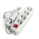 Сетевой удлинитель MastAK выполнен из глянцевого пластика белого цвета. Удлинитель имеет 4 вро-розетки с заземлением и кнопкой выключателем. Выключатель разрывает два токоведущих провода - при выключении полностью отключает розетки удлинителя от входа (остается только заземление). Во включенном состоянии кнопка выключателя подсвечивается красным светом светодиода.